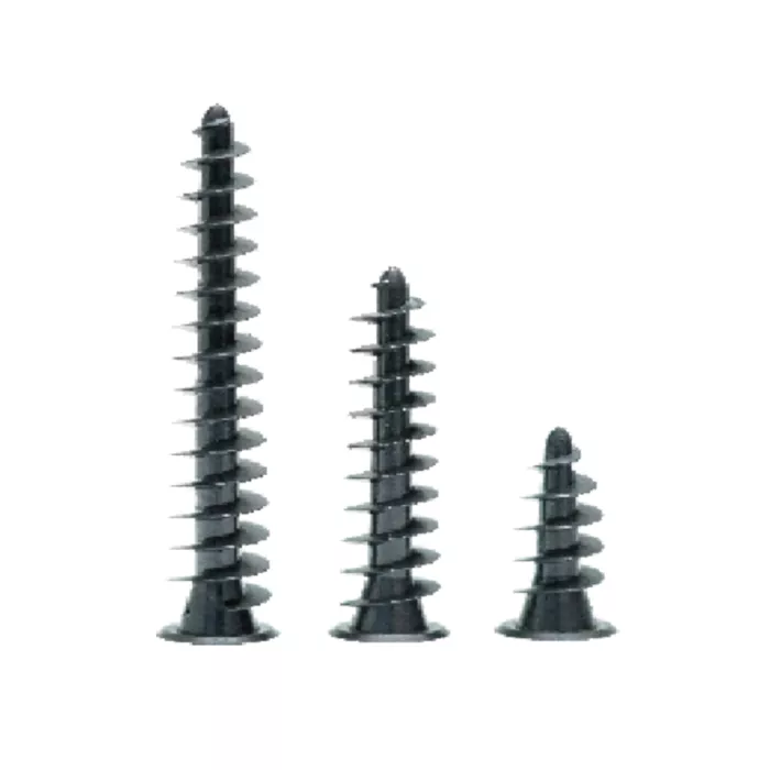 本品为专用于较厚的杰爱板之间,互相垂直拼接辅助安装用螺纹钉,结构简单,使用方便,连接稳固,较粗的螺纹和螺杆不仅加大了咬合面,锚入时也可以因为较大的体积变化,加大对接触面周边的泡沫挤压,这种挤压力可以帮助钉子获得更多的摩擦力,以提高钉子固定时的稳定和防偏移效果,从而提高实际的安装速率和实际固定后的背衬板牢固稳定效果。